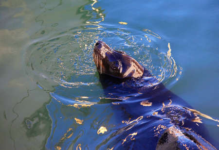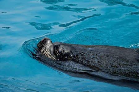Sea lion swimming in the water. Close up of a sea animal.