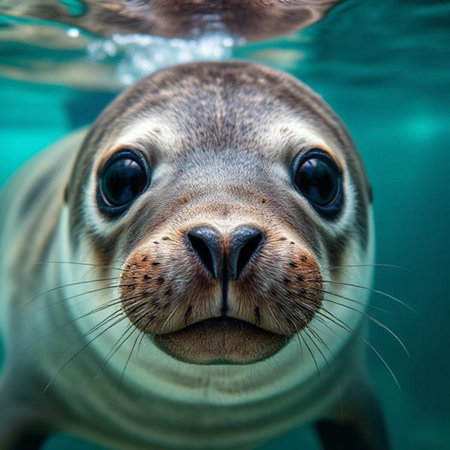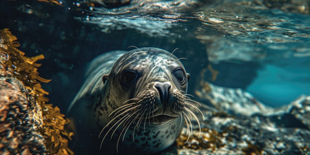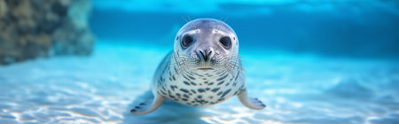 AI Generated. Playful seal swimming underwater with curious expression in clear blue ocean