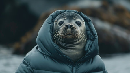 A sea seal in a down jacket
