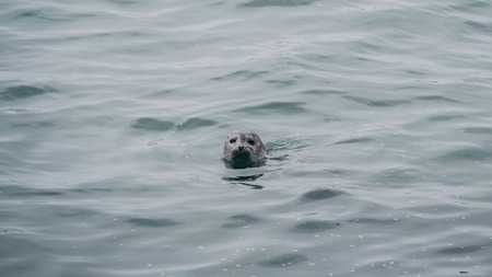 seal swimming in the ocean common seal. head out of water funny