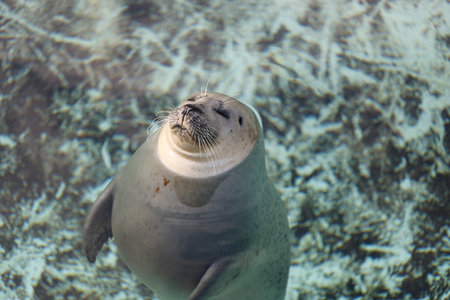 a seal underwater swimming with clear water.
