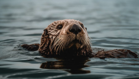 Close up portrait of cute wet sea lion swimming outdoors generated by artificial intelligence