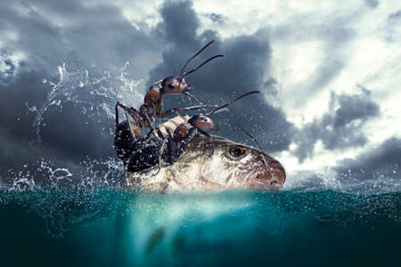 Ants seamen are fishing in the ocean