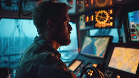 A seasoned captain scans the sea with binoculars for signs of land or obstacles that may hinder the voyage. Generative AI