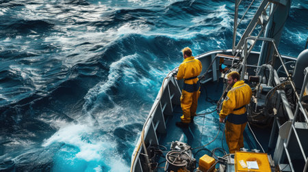 Sailors on the ship looking at the view, AI generated Image