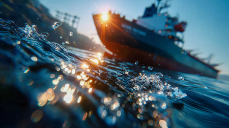 Dark blue waves reflecting sunlight at sunset creating beautiful ripples. Ai generated image