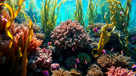 Colorful coral reef underwater, marine life ecosystem background