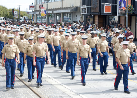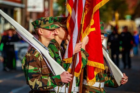 Portland, Oregon, USA - November 11, 2015: Oregon Cascade Young Marines march in the annual Ross Hollywood Chapel Veterans Day Parade, in northeast Portland.