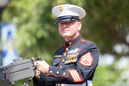 BUCHAREST, ROMANIA - December 1, 2018: US marines take part at the Romania’s National Day military parade, in Bucharest.