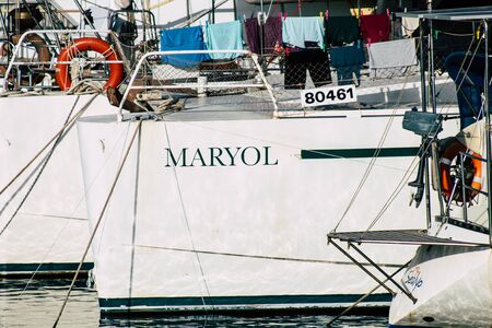 Limassol Cyprus May 14, 2020 Closeup of a boat moored in the marina of Limassol in Cyprus island