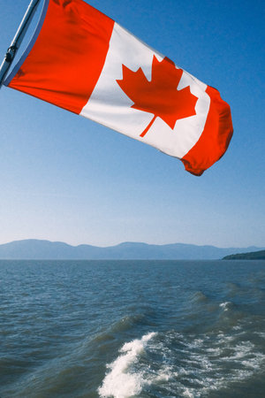 Colorful pins with flags on the map of Canada. Conceptual image.