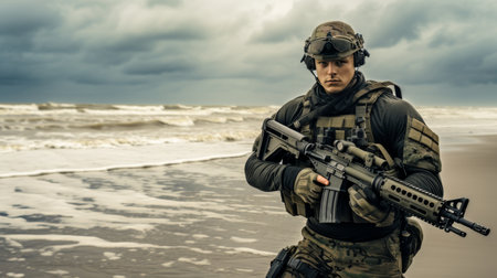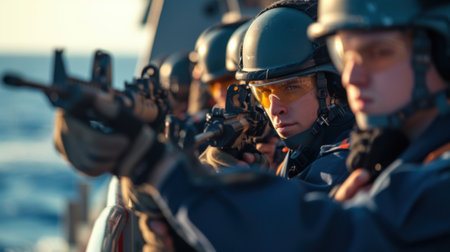 a group of well trained, armed and equipped marine soldiers make a boarding.Editorial use only.Black Sea/Bulgaria/04.21.2016. Special Forces of the Marine Forces train the boarding.