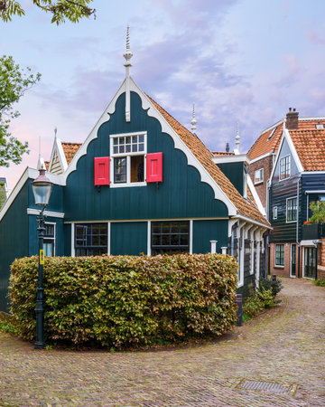 evening light, dutch old village in Amsterdam region, Volendam