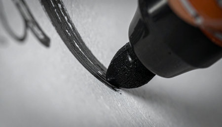 A macro view captures the precise moment a black marker makes its mark.