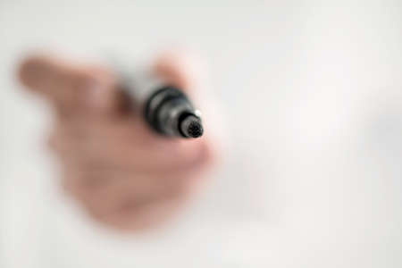 Hand holding a black marker on white background,ready for drawing