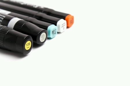 varicoloured markers on the white isolated background