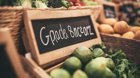 Vibrant array of fresh fruits and vegetables on display at a local market, showcasing natural abundance and variety