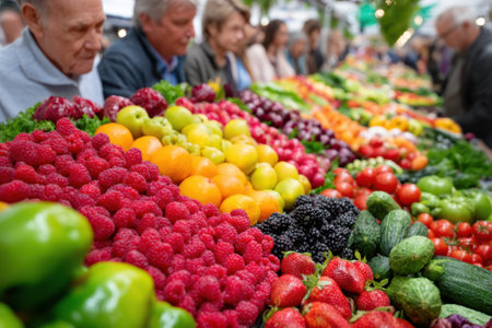 Colorful displays of fresh fruits and vegetables fill the farmers' market, where locals gather to support local growers and explore fresh options.