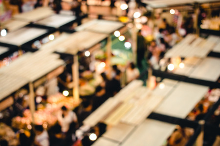 abstract blur image of people go to shopping in night market festival for background usage, vintage tone, top view or bird eye view composition.
