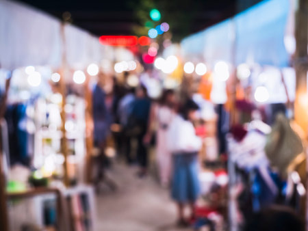 The defocused people walking in the outdoor flea market. Picture was blurred in purpose