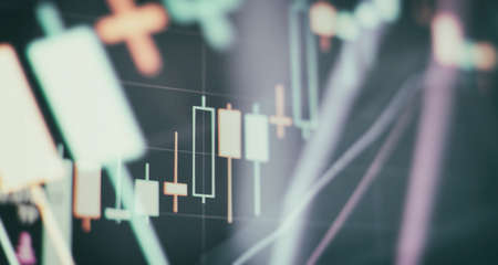 Abstract financial trading graphs on monitor. Background with currency bars and candles