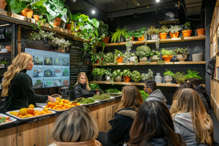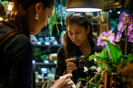 woman photo shoot at plants shop on bokeh style background