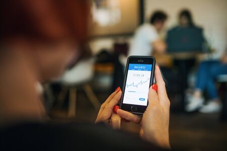 using a mobile device to check market data with bokeh copyspace