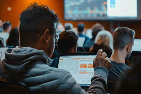 A person attending a seminar on stock market investing, gaining knowledge about business and investing to increase returns