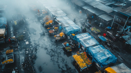 Generative AI : Dhaka Bangladesh 24 January 2023 Aerial view of people working in a local food market