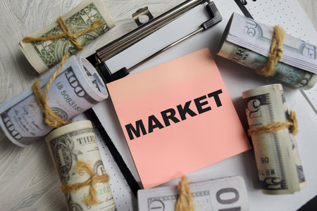 Market. Economy, crisis, trends and development concept. Price tag