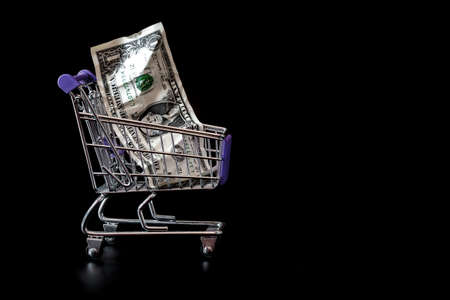 Household spending concept with dollar sign in shopping cart for consumption expenditure , monthly expenses for groceries, buying clothes, housing.
