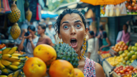 Woman in local farmers market. Generative AI