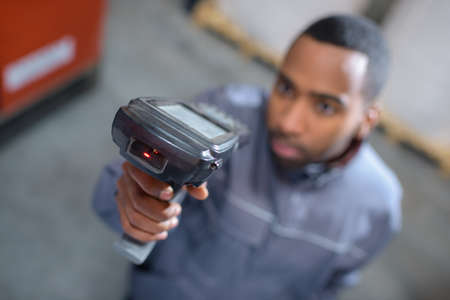 close up of worker scanning barcode
