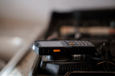Industrial Setting with Mobile Device on Workshop Stove.