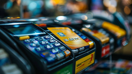 Payment terminal with plastic cards in the store.