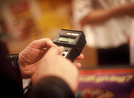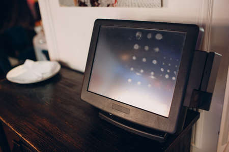 waiter cash register monitor with fingerprints From frequent use restaurant business concept.