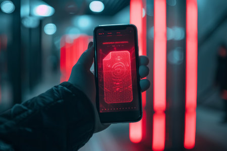 Person Using Smartphone App With Data Analytics Display in Urban Setting