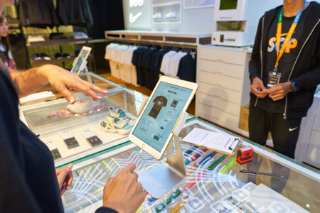 SINGAPORE - CIRCA APRIL, 2019: customisation area at Nike store in Jewel Changi Airport.