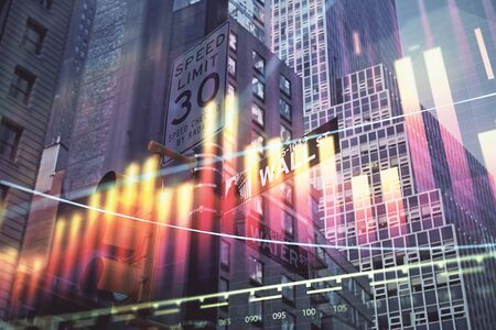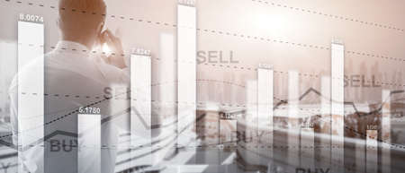 Financial stock trading graph chart diagram business finance concept double exposure mixed media