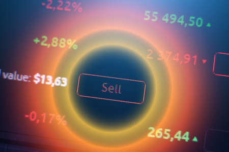 Online stock exchange application with information on screen, closeup