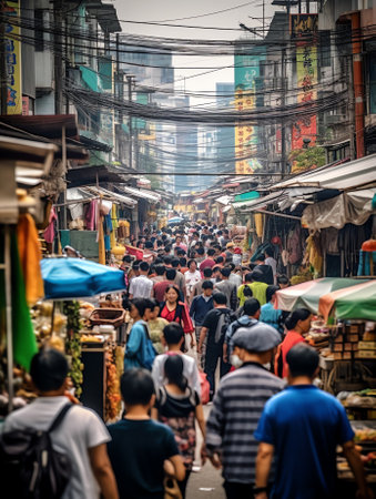 Exploring a Bustling Chinese Market Street Generative by Ai.