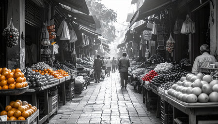 Busy market vendor selling fresh fruit in crowded street market generated by artificial intelligence