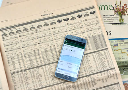 MONTREAL, CANADA - MARCH 10, 2017 : Market Data page in Financial Times. The FT is an English-language international daily newspaper with a special emphasis on business and economic news.