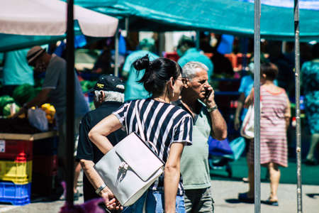 Limassol Cyprus June 13, 2020 Portrait of unidentified people shopping at the Limassol market in the morning