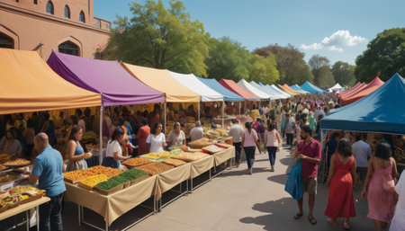 Outdoor Food Market with Colorful Stalls