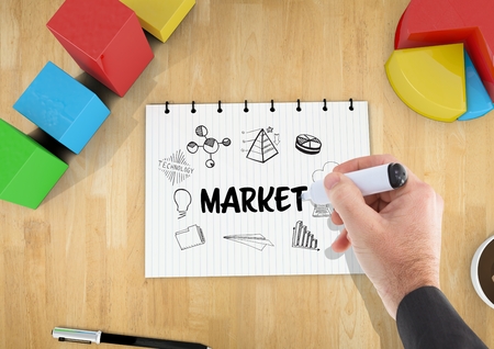 Digital composite of Market graphic on a notebook on a desk
