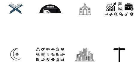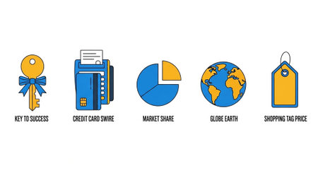 Icons include bank, money bag, calculator, credit card and graph. Ideal for financial websites or applications. Visually appealing and easy to understand presentations of financial concepts.