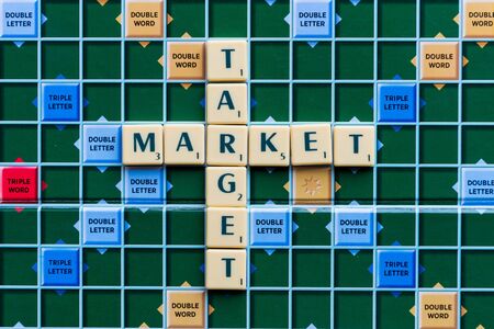 Hand and finger arrange text letters of MARKET word on wood table, with copy space for add advertising word or product. business and finance concept idea.