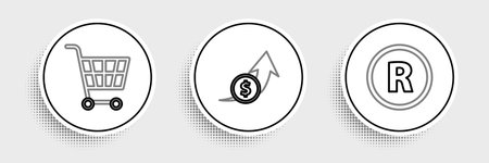 Set line Registered Trademark Shopping cart and Financial growth and coin icon. Vector.