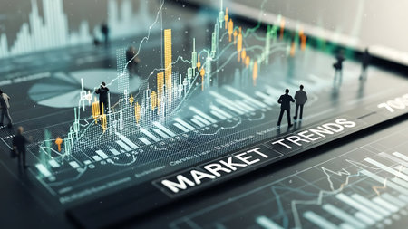 Market trends and stock exchange trading concept on virtual screen. 3D rendering